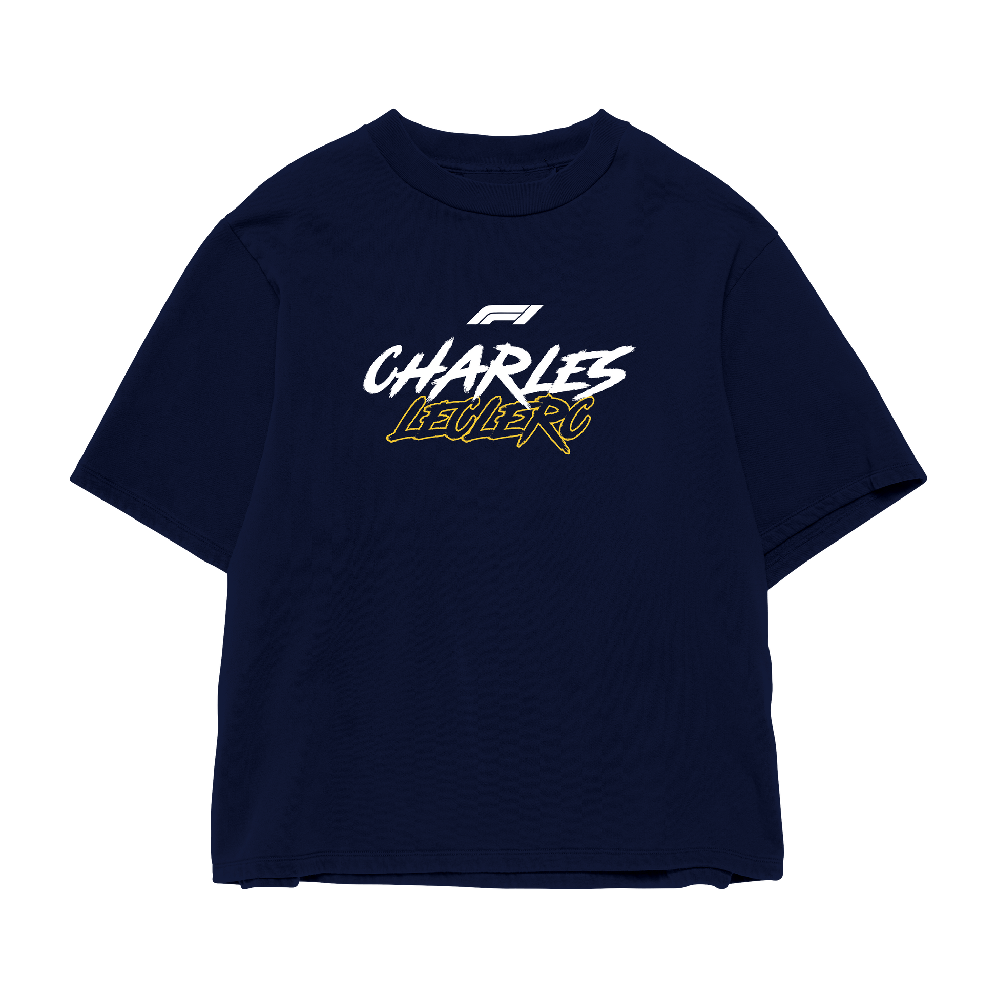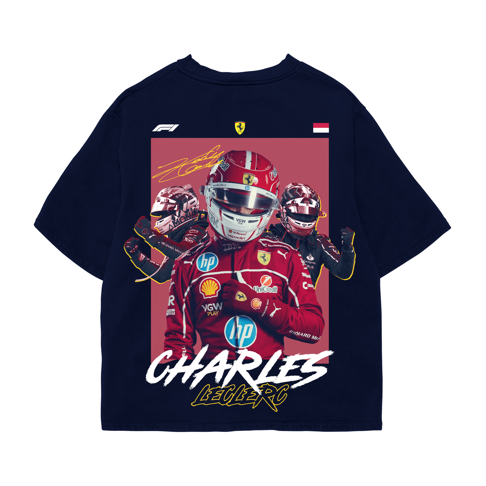 Show your support for Ferrari’s rising star with the Charles Leclerc Oversized Tee – Navy Blue. Featuring a bold back graphic of Leclerc in his Ferrari race suit surrounded by action shots and his signature, this tee captures the spirit of passion and speed. The front keeps it minimal with his name and number, while the oversized fit and premium cotton fabric make it a perfect mix of comfort and streetwear edge.