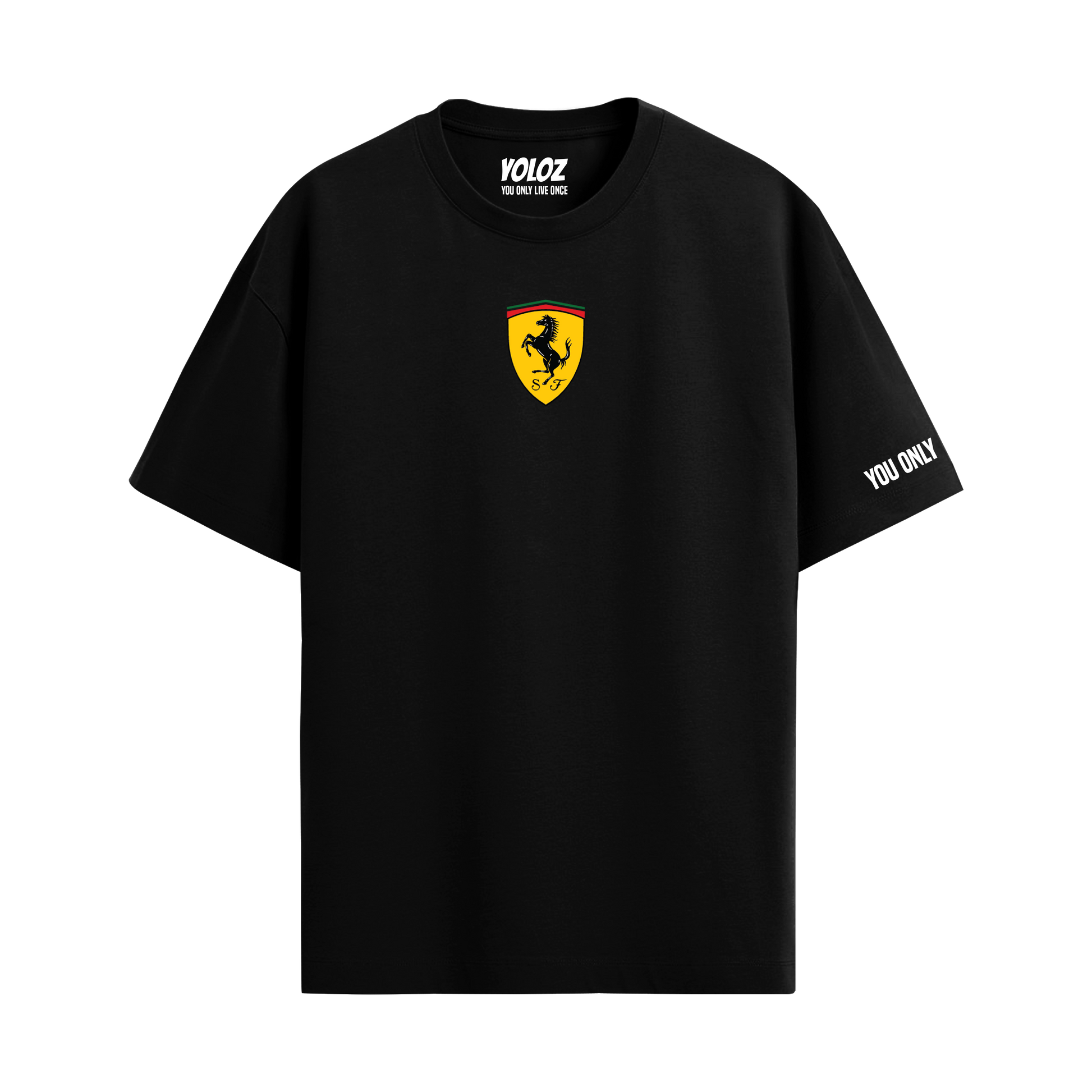Unleash the power of speed and style with the Ferrari black oversized t-shirt. Designed for car enthusiasts and streetwear lovers, this tee features a bold Ferrari-inspired design, blending luxury with urban fashion. The 230 GSM 100% Terry Cotton fabric ensures premium quality, durability, and a structured oversized fit for ultimate comfort and effortless style.