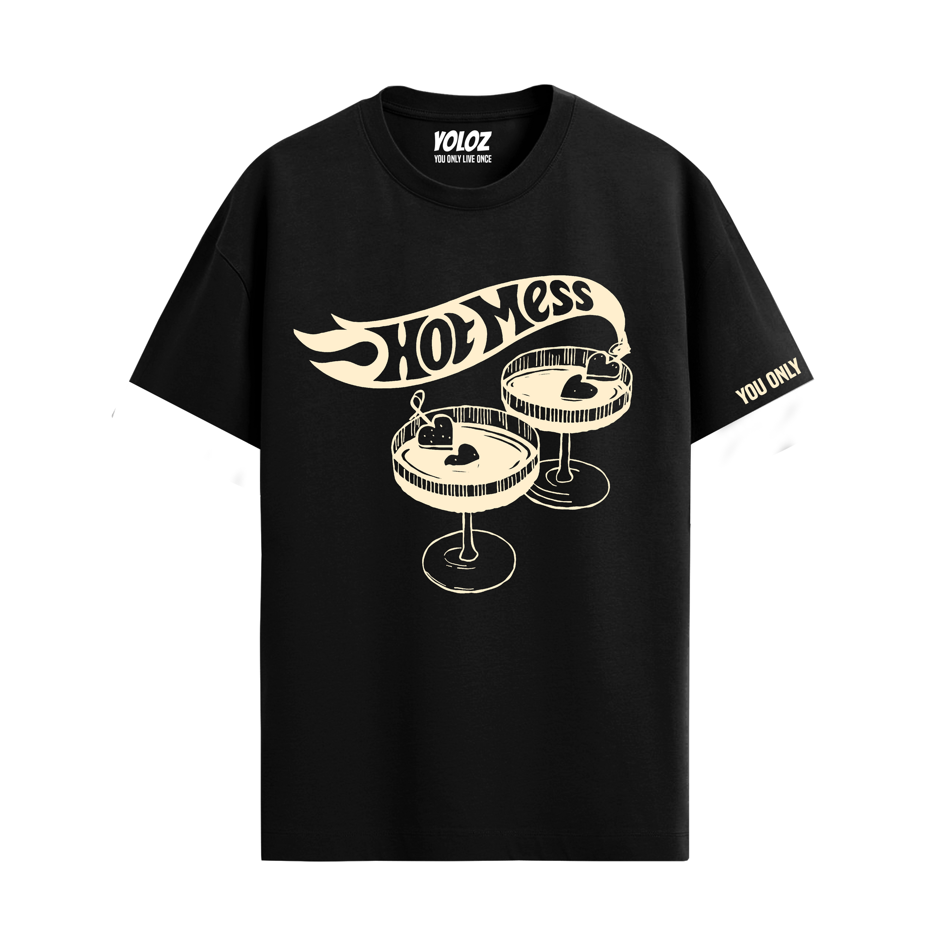 HOT MESS BLACK REGULAR FIT T-SHIRT