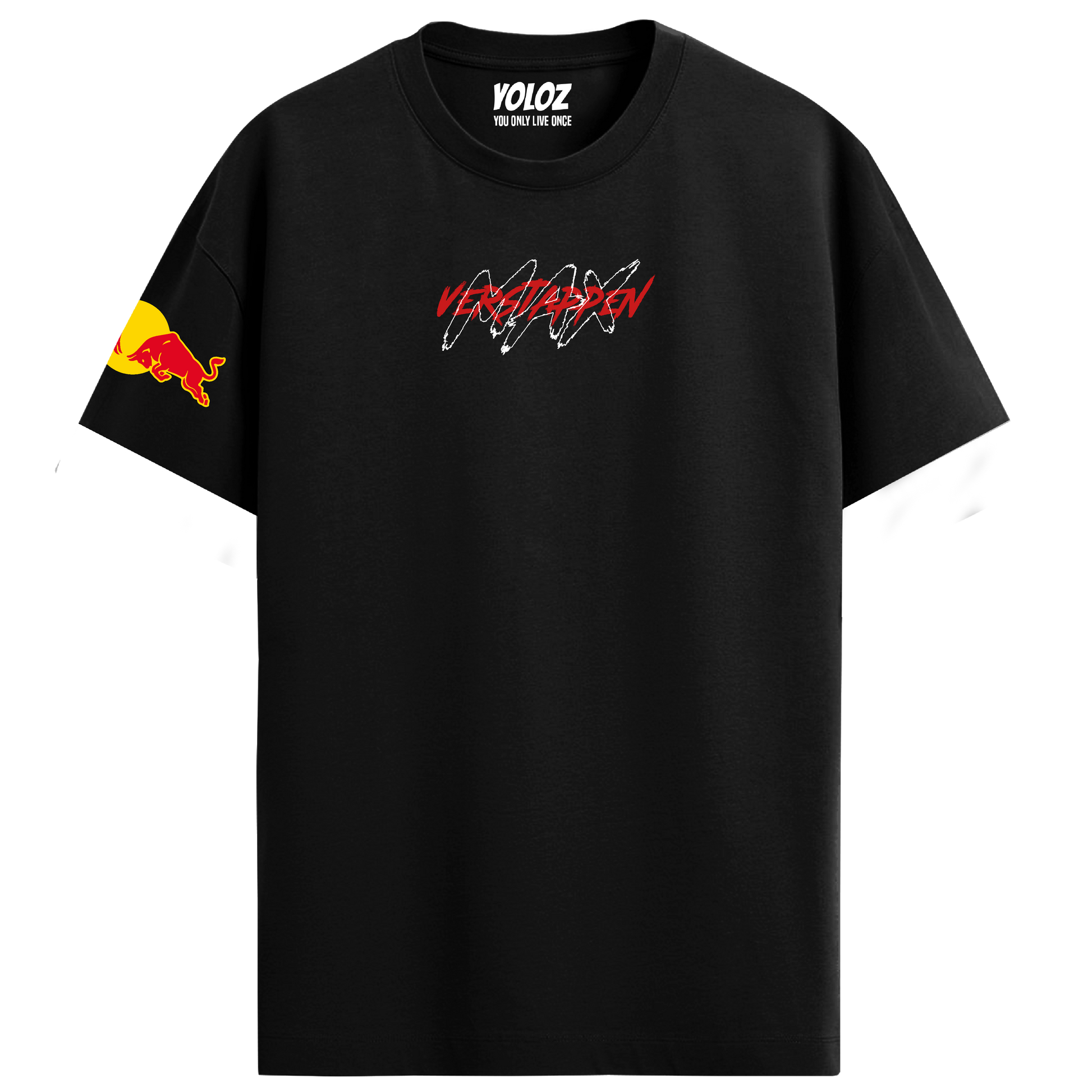Celebrate the dominance of the Flying Dutchman with the Max Verstappen Regular Fit Tee – Black. Featuring an electrifying collage of Verstappen’s race-day moments, his Red Bull Racing car, and bold typography, this tee captures the unstoppable energy of the World Champion. The oversized fit gives it a streetwear edge, while the premium cotton fabric ensures comfort on and off the track. Finished with Red Bull Racing branding on the sleeves and front, it’s the ultimate fanwear for those who live for speed.