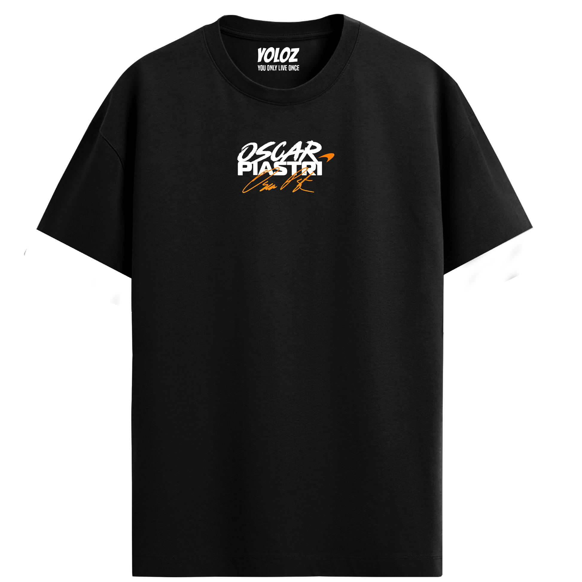 Signature Graphic Design – Oscar Piastri, McLaren branding, and car print for authentic fanwear