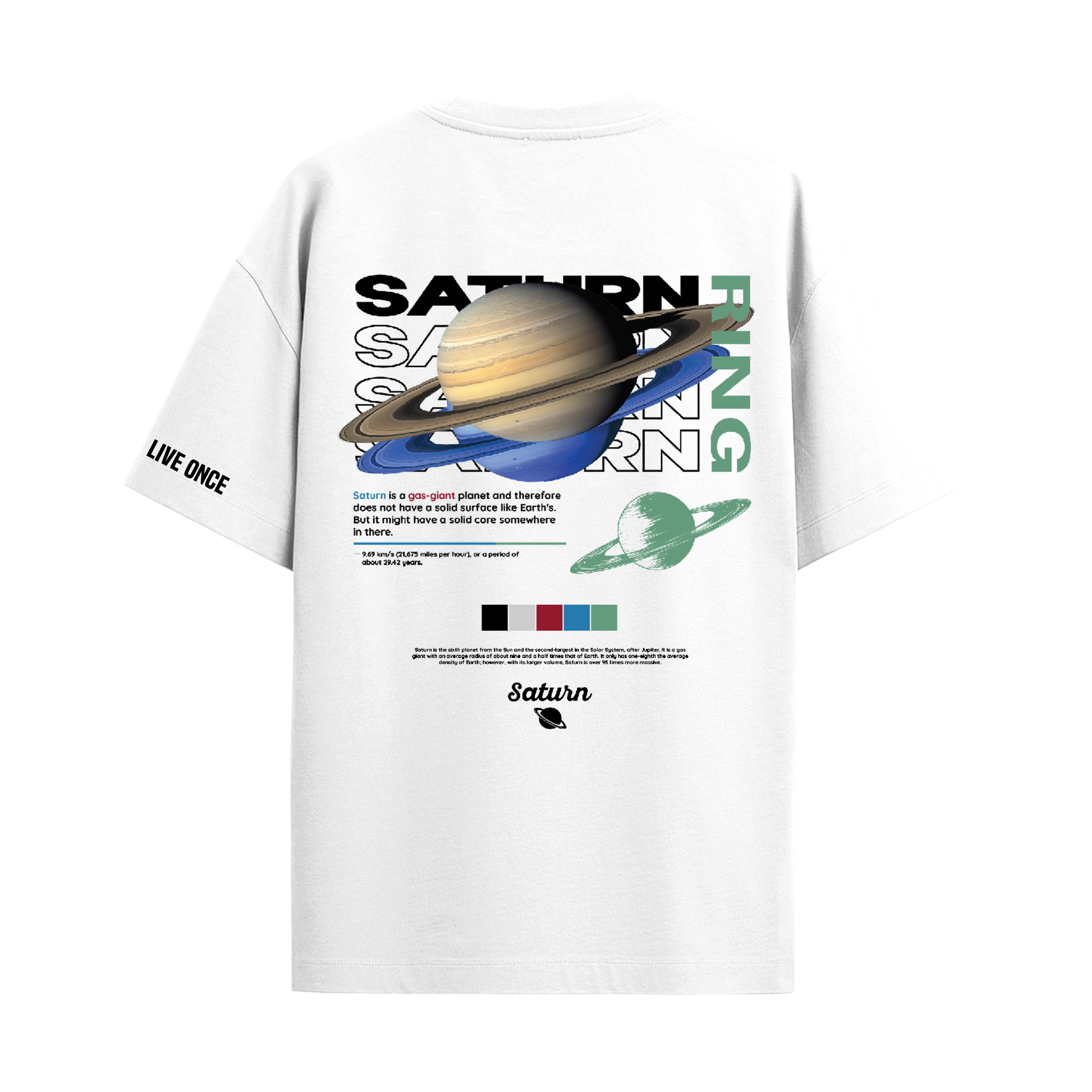 Bring the universe to your wardrobe with the Saturn white oversized t-shirt, a striking blend of minimalism and cosmic inspiration. The crisp white fabric highlights the detailed Saturn graphic, making it a timeless and futuristic piece. Designed in 230 GSM 100% Terry Cotton, this tee offers a soft yet structured oversized fit.